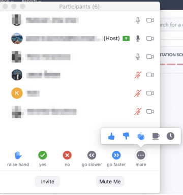 Jednou z nich je používání non-verbal feedbacku. V minulosti bylo možné pouze “zvednout ruku” tlačítkem v panelu se seznamem účastníků, nyní zoom tyto možnosti rozšířil o další tlačítka.