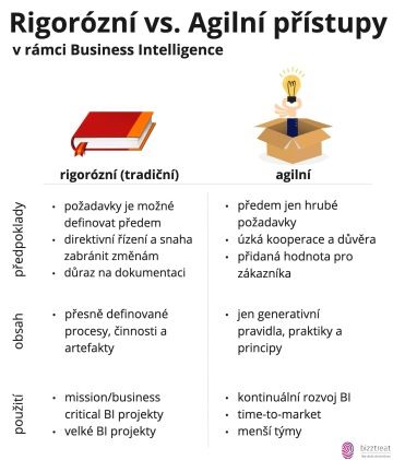 Ani jeden z přístupů není špatný, ale každý přináší svá pozitiva a negativa. Právě proto se nedá říci, že by firma vyvíjela BI právě buď agilně či rigorózně, ale ve většině případu se jedná o vývoj, kdy se tyto přístupy prolínají.