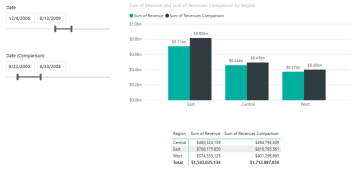 V našom prípade sa pozrieme na revenues dvoch rôznych období podľa regiónov.