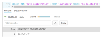 Pokud nás zajímá třeba datum registrace prvního zákazníka, na první pohled není zřejmý žádný problém.