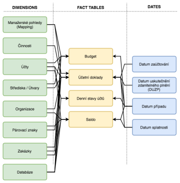 - Účetní data je potřeba “učesat” a nakonec propojit s mappingy. Nám se osvědčilo používat tento datový model: