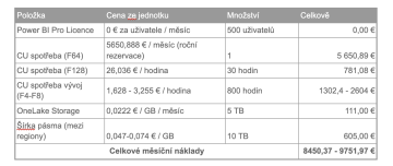 Ceny startují na konkurenceschopné úrovni ~10 € za den, což činí Fabric dostupým i pro menší organizace.