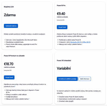 Jak bylo již napsáno výše, od SKU F64 výše je možné využívat Power BI v neomezeném počtu uživatelů bez dodatečných nákladů.