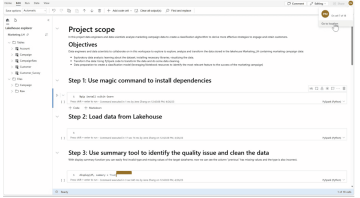 Pokud jste již pracovali s Jupyter Notebooks, psaní transformací nebude problém. Notebook lze připojit k Lakehouse, kde jsou uložena vaše data, a transformaci můžete psát v jednom ze čtyř podporovaných jazyků: Python, SQL, Scala, R.