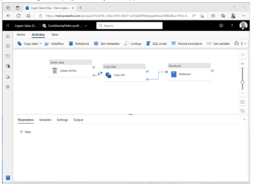 Orchestrace může být vytvořena pomocí datových pipeline, kde můžete snadno sestavit svou datovou pipeline metodou "drag and drop".