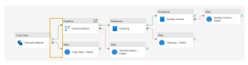 On Fail → Tento stav znamená, že propojení bude aktivováno, pokud předchozí krok selže. Například pokud data neprojdou úspěšně nastavenými quality checks, pošle se automaticky emailová notifikace na support.