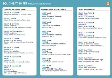 Když si zadáte do googlu pojem: "SQL cheatsheets" najdete si těchto taháků spouuustu. Pokud se vám ale nechce hledat, tady je pár mých oblíbených: