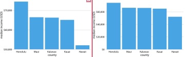 od modré po červenou a pro množství v regionech zvolit jednu centrální barvu, které podle četnosti výskytu upravujeme sytost. Bílé pozadí je základ. Vždy bychom měli myslet na přehlednost a nenechat se unést přílišnou kreativitou. Udržujme stejné barvy grafu a jeho popisků, ať víme, co k čemu patří.