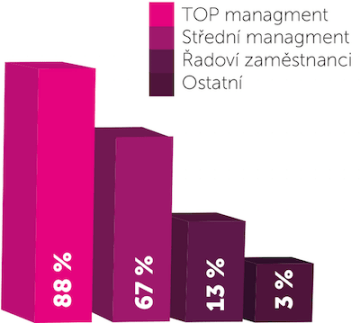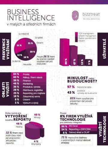 Mezi jednotlivými uživatelskými skupinami jednoznačně kralují TOP Manageři firem (86%). Pouze ve 13% firem jsou uživateli BI řadoví pracovníci, což příliš nesvědčí o probíhající demokratizaci dat. Z druhémo úhlu však tato oblast může být pro malé a střední firmy další zajímavý prostor pro konkurenční výhodu. Jak ukazuje mnoho pozitivních příkladů z různých projektů, BI je silným nástrojem pro motivaci řadových pracovníků. V každém okamžiku mohou vidět, jak se jim daří, jak se průběžně vyvíjí jejich měsíční odměna a jak jsou na tom v porovnání s ostatními členy týmu.